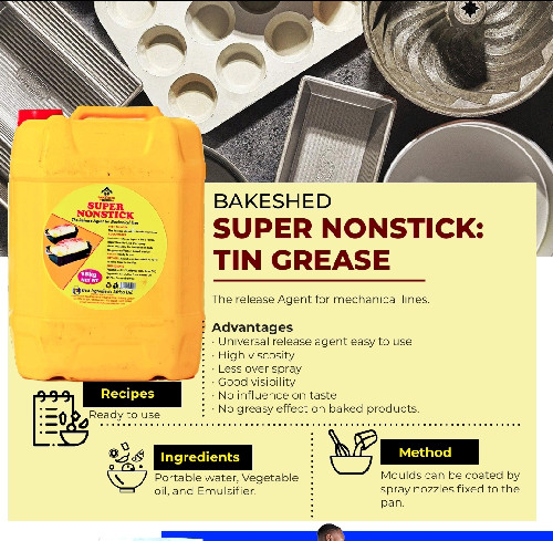 Tingrease packed in 20litre jerrycan with 18kgs tingrease used to grease pans or tins for bread and cakes and it leaves the product withno scent