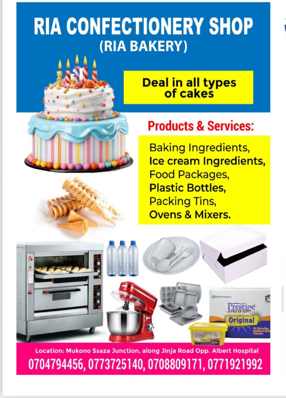 Baking ingredients,ice cream ingredients food packaging,plastic bottles ,packaging tins, ovens and mixers . We handle deliveries